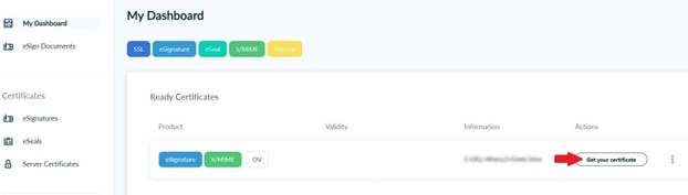 When the validation is completed you can proceed with the certificate acceptance. Press Get your certificate.