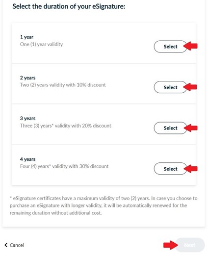 Choose the duration of your remote eSignature and click Next.