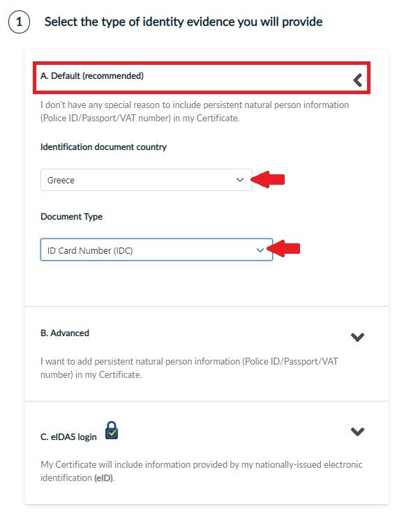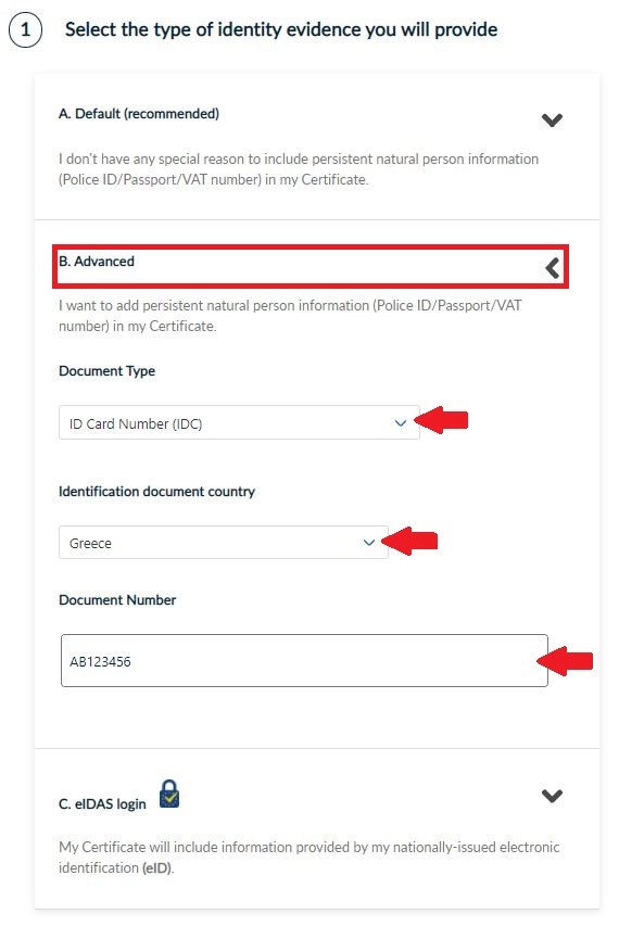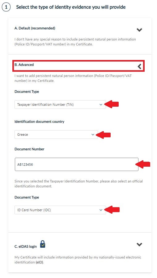 - Choosing the advanced option HARICA will include persistent natural person information in your certificate.