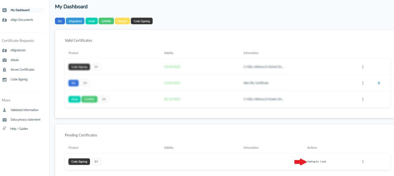 Now, your request needs to be approved by HARICA’s validators, who will check and verify the data that you have submitted.