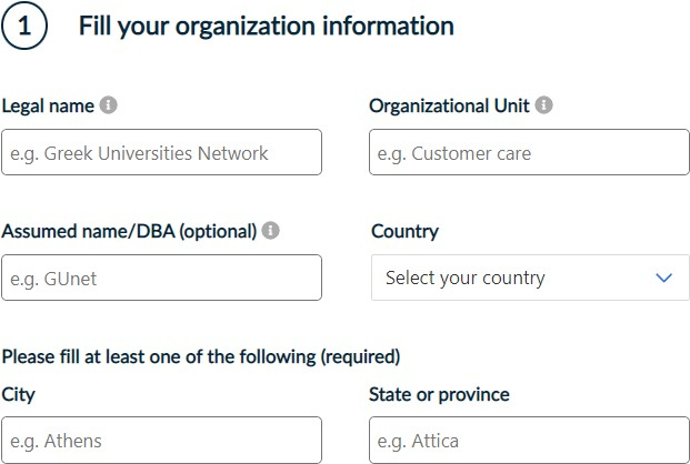 Fill in all the required information regarding your organization.