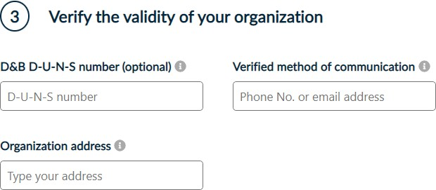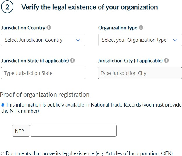 Verify the validity of your organization by filling in all the required information.