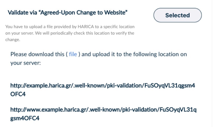 Upload a file, provided by HARICA, to a specific location on your server.