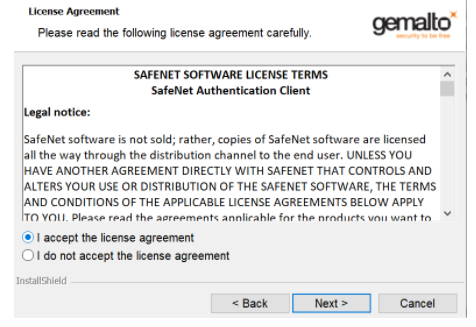 1. Download and install SafeNet Authentication Client software.