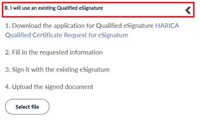 - Fill in and digitally sign HARICA’s request form with an existing qualified eSignature (e.g. eToken, smartcard).