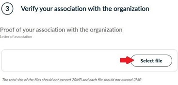 Upload the necessary documents that prove your association with the organization. Then, click Next.