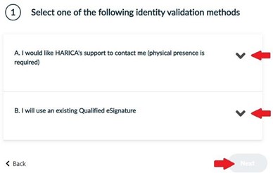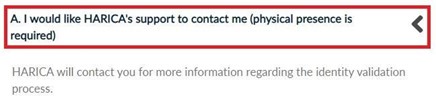 In case you choose method A, your physical presence is required. HARICA’s validators will contact you for more information (e.g. arrange an appointment at HARICA’s Registration Office).