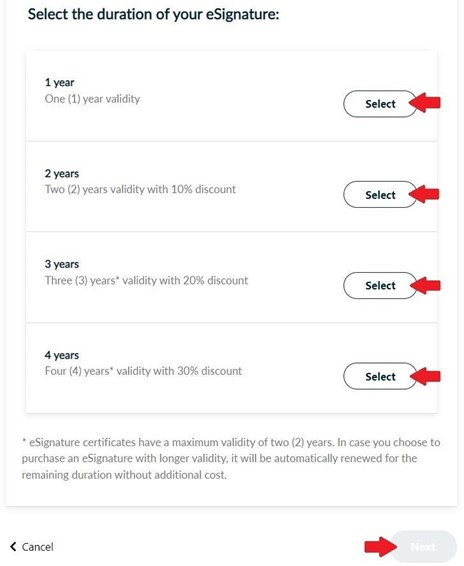 Choose the duration of your certificate and click Next.