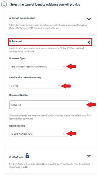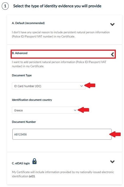- Choosing the advanced option HARICA will include persistent natural person information in your certificate.