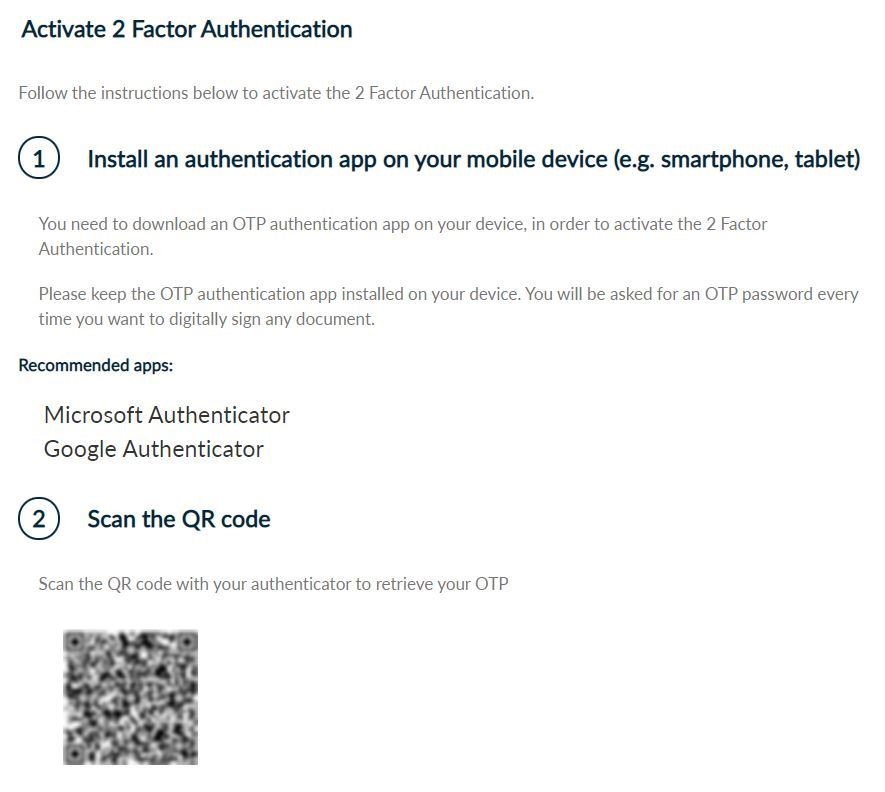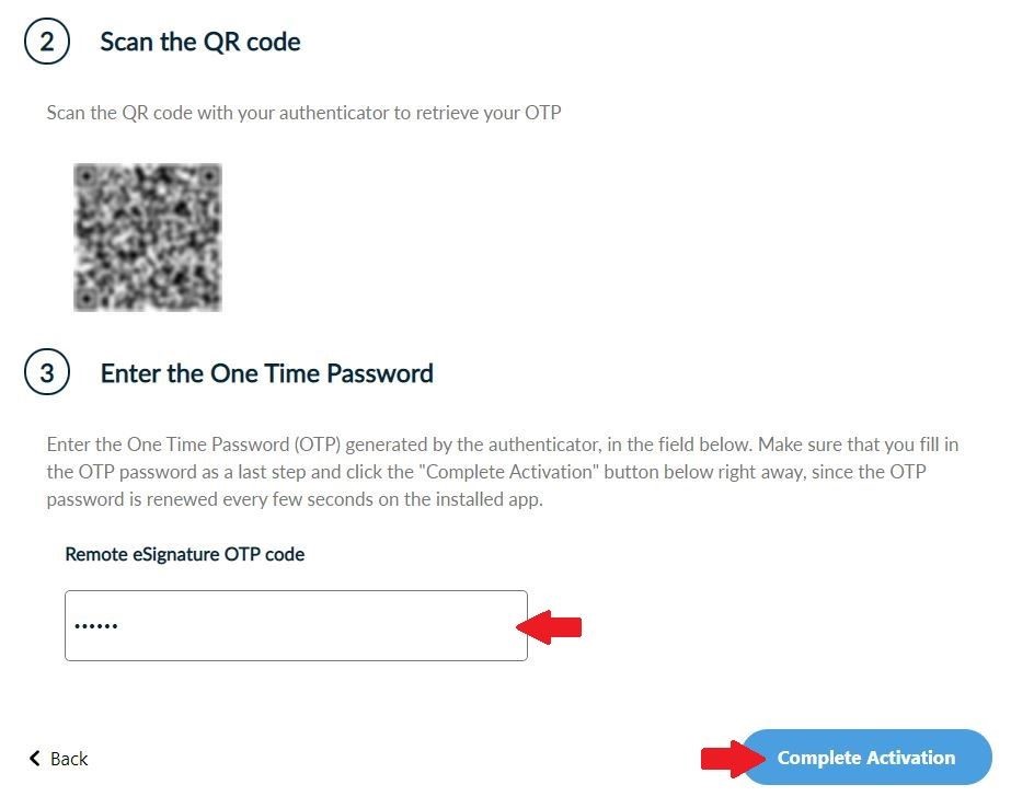 Fill in the current OTP code from the application and click Complete Activation.