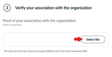Upload the necessary documents that prove your association with the organization. Then, click Next.
