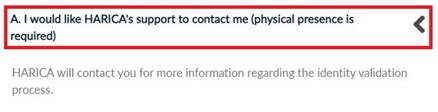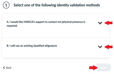 In case you choose method A, your physical presence is required. HARICA’s validators will contact you for more information (e.g. arrange an appointment at HARICA’s Registration Office).