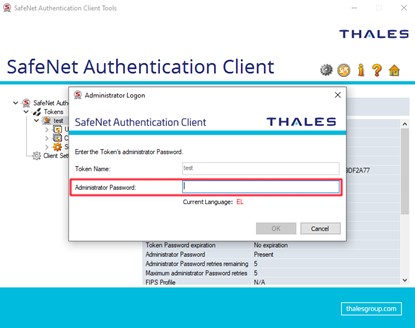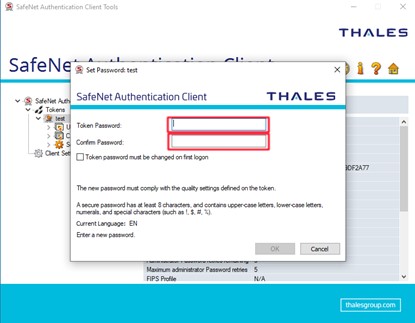 5. Finally, enter the new PIN in the next two fields Token Password and Confirm Password.