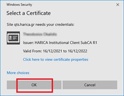 CAUTION! If this window doesn’t appear in this step and the software asks you to configure a new digital ID, this means that your computer can’t find your certificate. In this case, confirm that your certificate is properly installed on your computer or contact support@harica.gr.