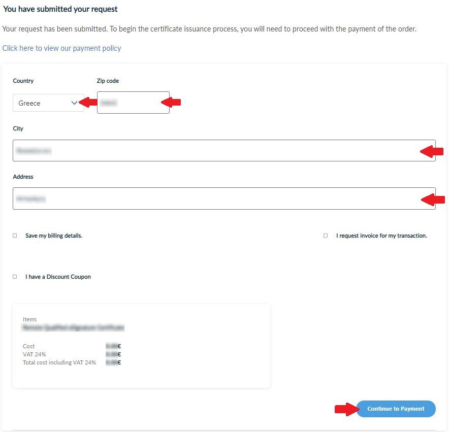 Once the payment is complete, you will be redirected back to HARICA’s CertManager confirming the purchase of your Certificate.