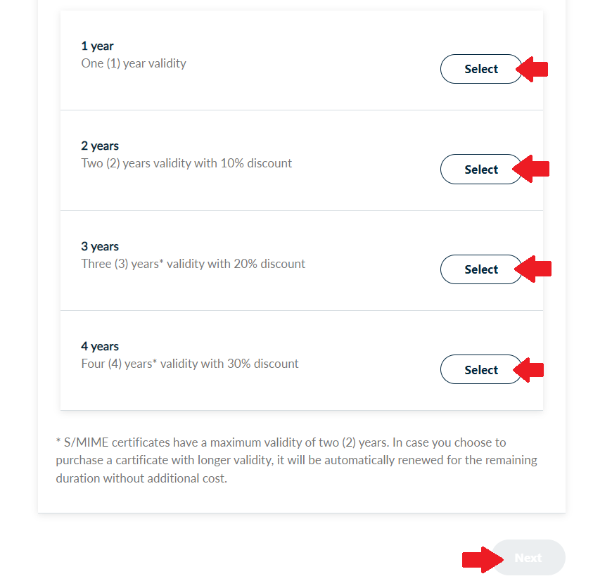 Choose the duration of your certificate and click Next.