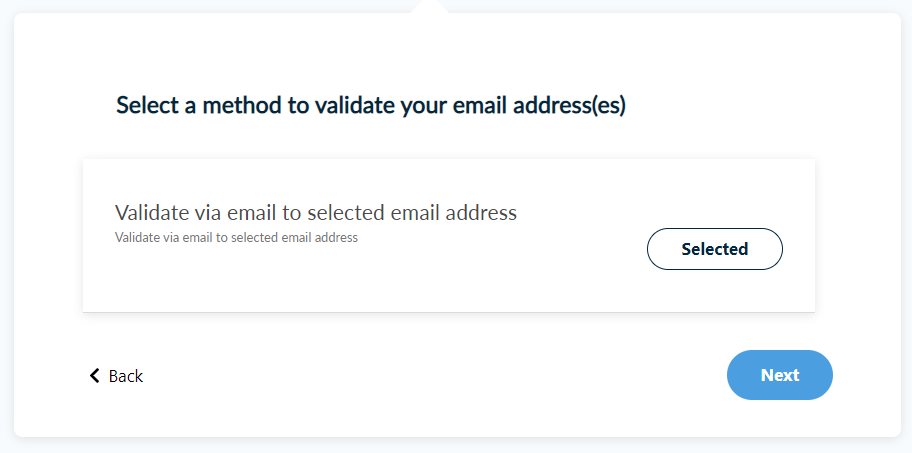 You have to select the following email validation method to prove you control/own your email address(es). Then, click Next.